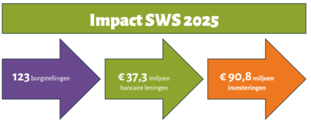 In 2025 heeft SWS 123 borgstellingen toegekend aan sportorganisaties. De gemiddelde borgstelling bedroeg ruim € 139.000. Dankzij deze borgstellingen konden sportverenigingen en -stichtingen voor meer dan € 37 miljoen aan bancaire leningen aantrekken.